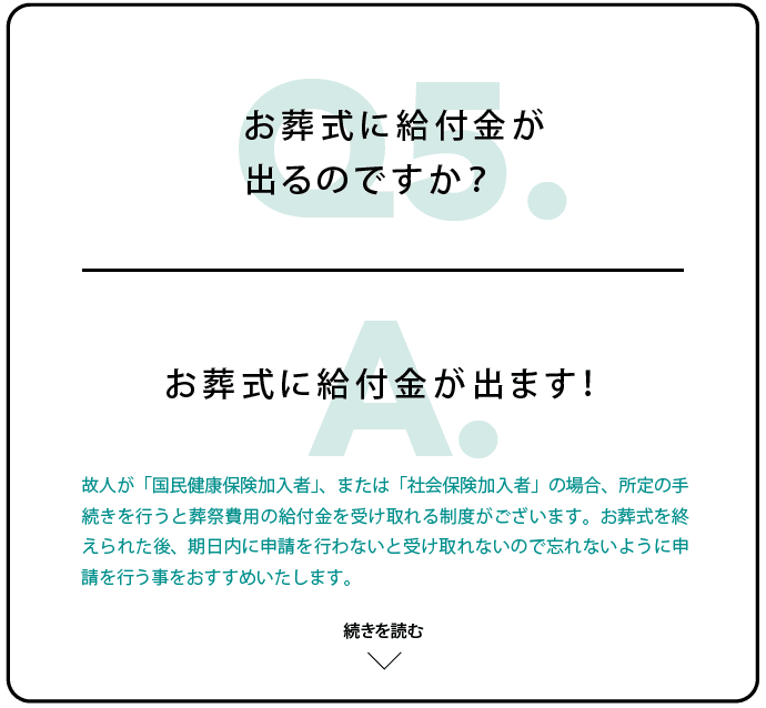 葬儀の費用や、葬儀社に関することなど、よくいただくご質問をご紹介いたします。